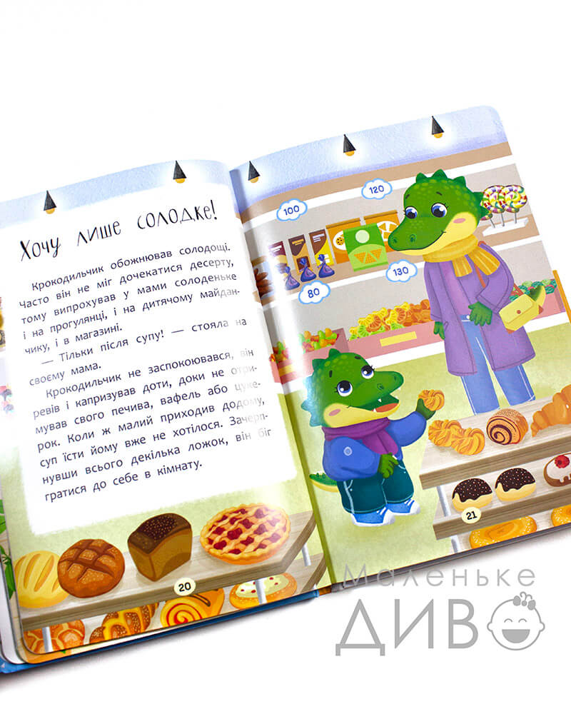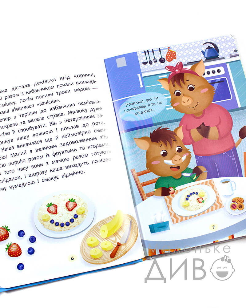 - наповнена п'ятьма чудовими казками, що навчать вашого маленького малоїжку їсти корисну їжу та не боятися куштувати нові страви