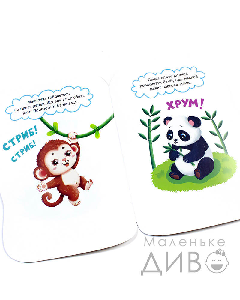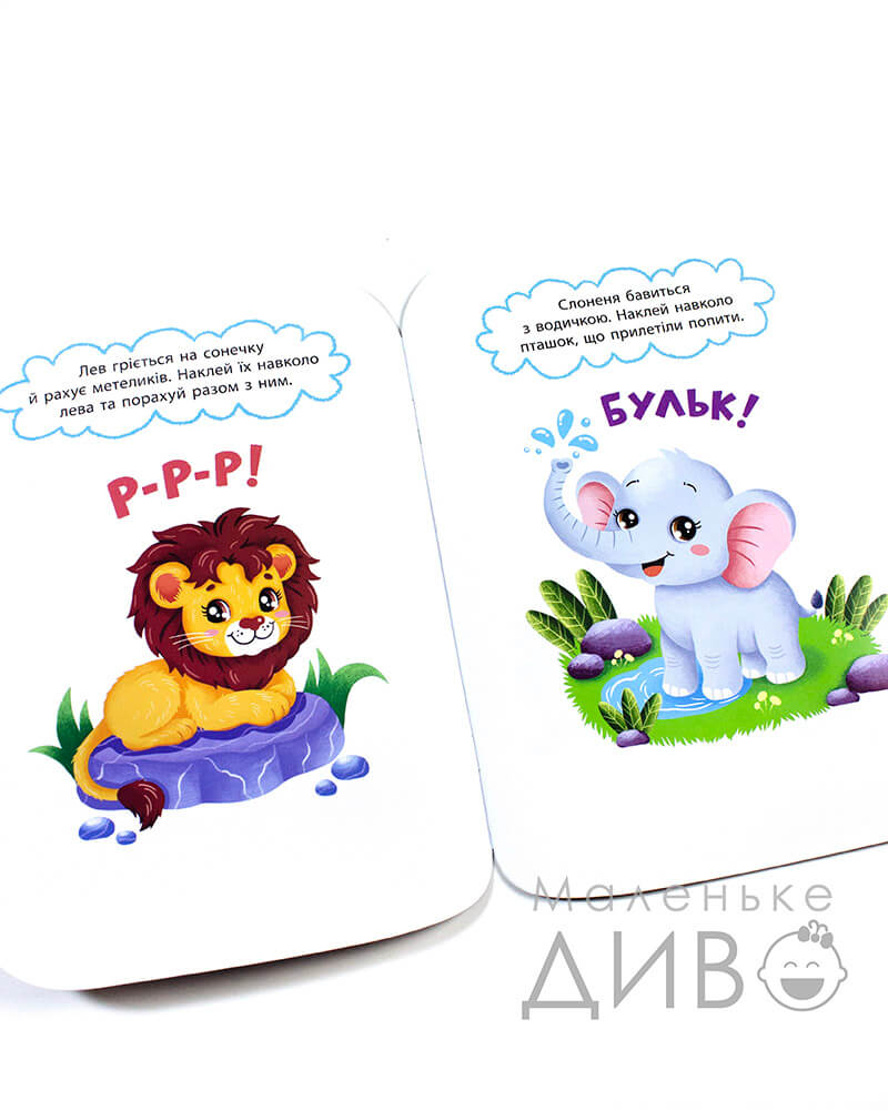 Розгорнувши це видання, Ваше маленьке диво побачить ілюстрацію та завдання, що потрібно буде виконати за допомогою наліпок.