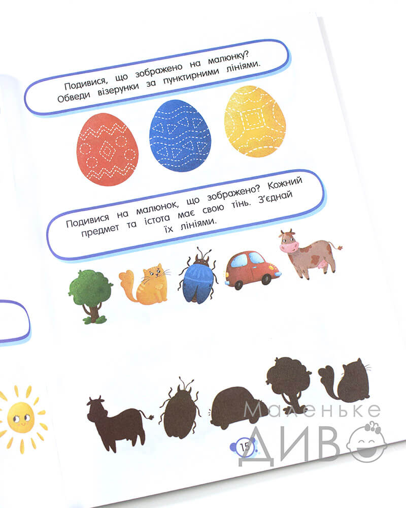 На початку та в кінці книжки Ви знайдете діагностичні таблиці, що допоможуть порівняти результати спочатку та в кінці роботи з книжкою. В книжечці дитину чекають цікаві завдання та яскраві картинки, що перетворять заняття малюка на цікаву гру. Для виконання завдань знадобляться олівці та гарний настрій.