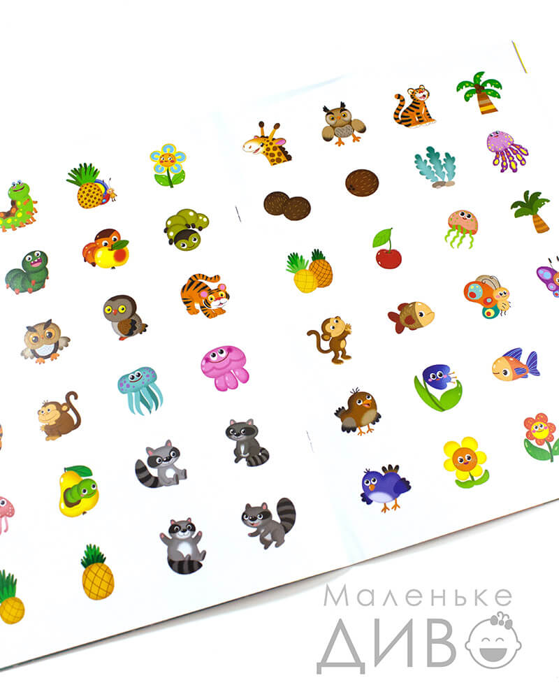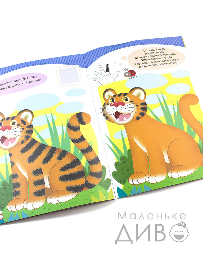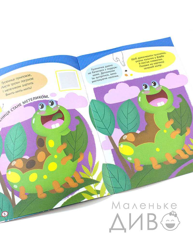 За допомогою пальчикових розмальовок ваш малюк розфарбовуватиме пальчиками веселі картинки та: