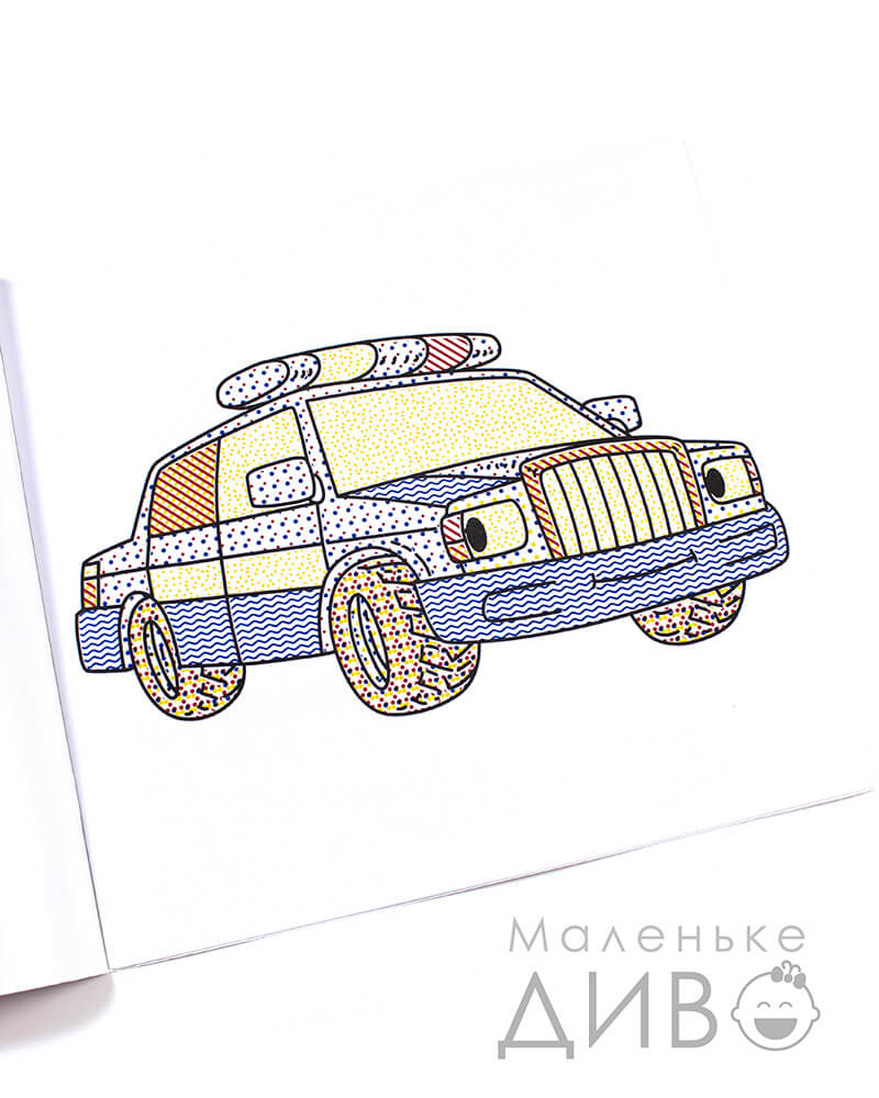 В цих розмальовках з однієї сторони аркуша нанесений малюнок з водною розмальовкою (на папір нанесені крапки з фарбою, які під дією води перетворять картинку на кольорову), інша сторона аркуша пуста (щоб наступний малюнок не ромивався водою з попереднього)