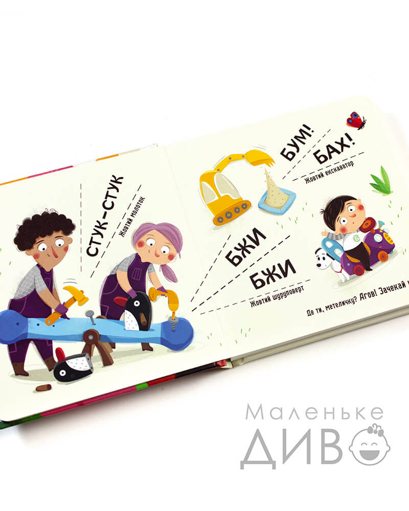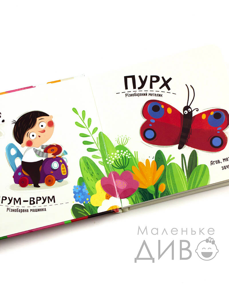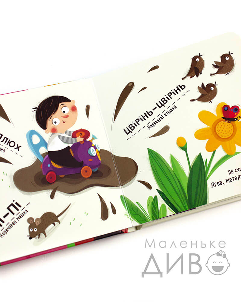 Книга Бодьо вивчає кольори та звуки ілюстрована простими, але зрозумілими та милими малюнками.