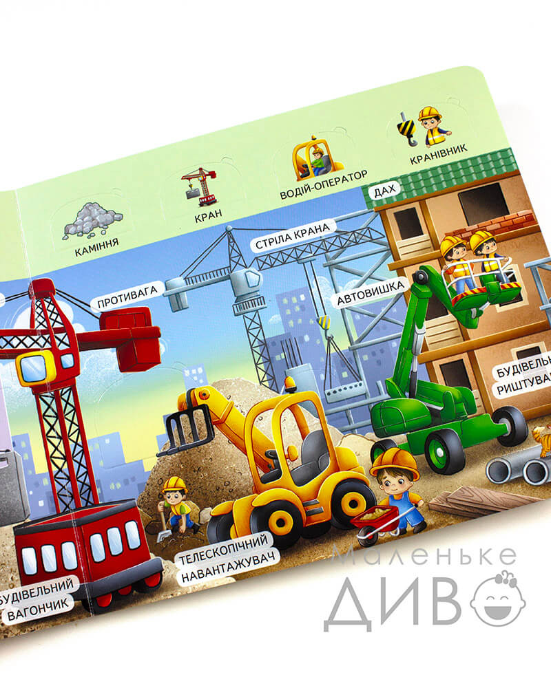 Книжка з віконцями. Машини на будівництві. 55 віконець