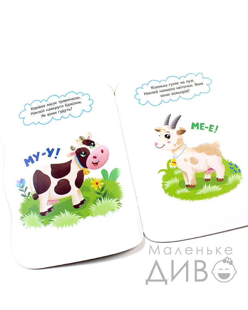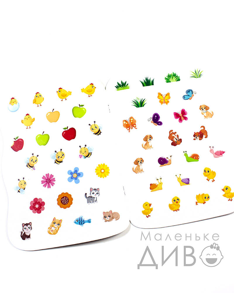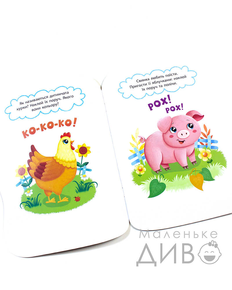 Розгорнувши це видання, Ваше маленьке диво побачить ілюстрацію та завдання, що потрібно буде виконати за допомогою наліпок.